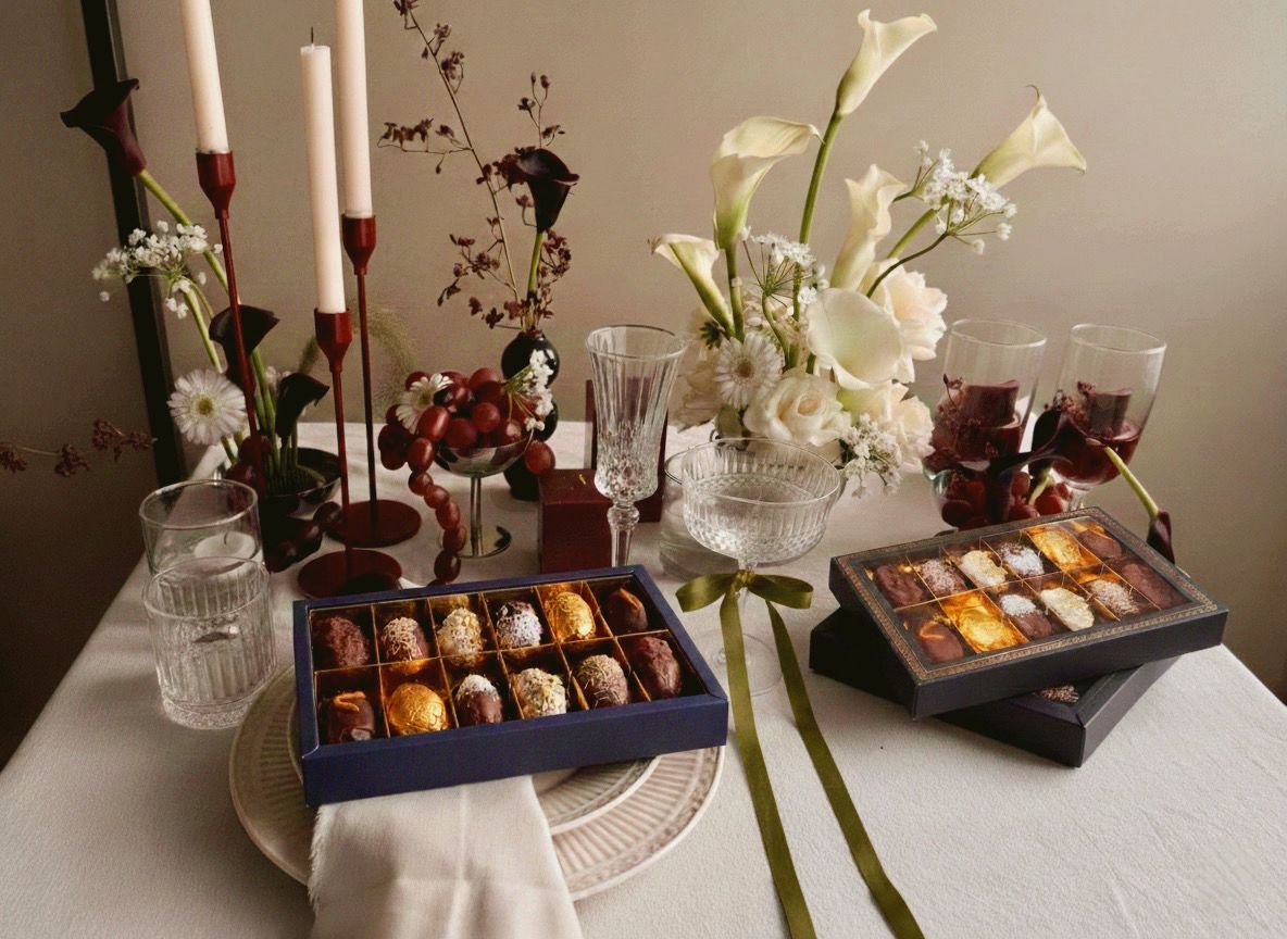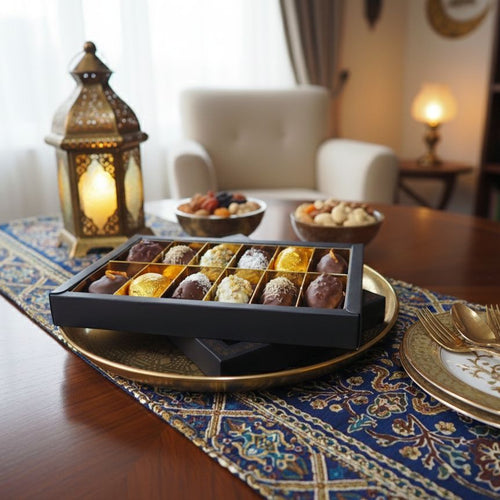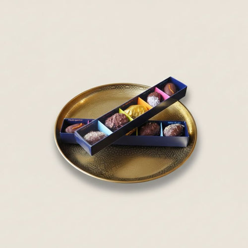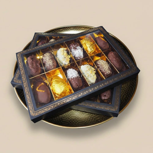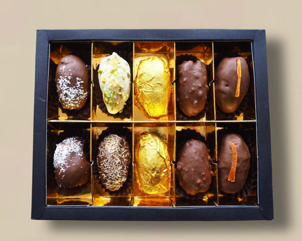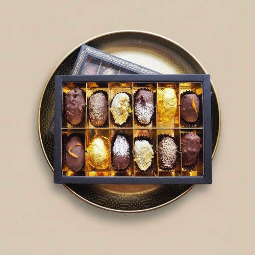 Die Essenz des Raffinements, vereint in acht exzellenten Kreationen. Bei Orient Style Datteln ist jedes Set als sensorisches Erlebnis konzipiert: Erlesene Medjool-Datteln, einzeln handverlesene Prachtstücke, zart gefüllt, mit feinster Schokolade überzogen und durch einzigartige Handwerkskunst vollendet. Entdecken Sie eine Vielfalt, die Genuss, Eleganz und die Liebe zum Detail in jedem Moment zelebriert.